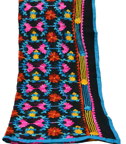 Indian Vintage Black Dupatta Blend Chiffon Long Stole Embroidered Scarves Floral Design Stole Veil Wrap