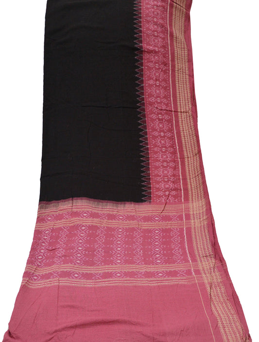 Indian Vintage Dupatta Black & Pink Long Stole Hand woven Sambalpuri Ikat Hijab Pure Cotton Indian Scarves Veil