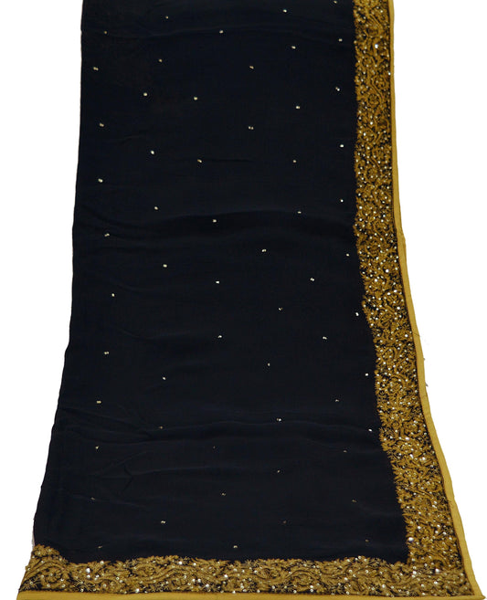 Indian Vintage Black Dupatta Pure Georgette silk Long Stole Hand Embroidered Scarves Stole Veil Wrap Sequins