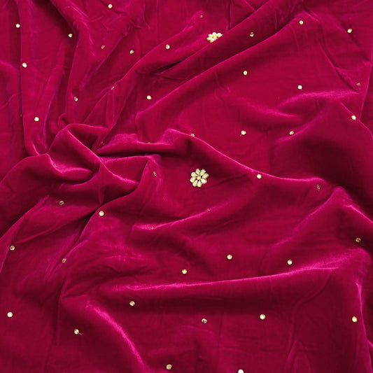 Indian Vintage Heavy Wedding Rani Pink Dupatta Velvet Long Stole Hand Embroidered Scarves Zari Hijab Veil Wrap Wedding dupatta