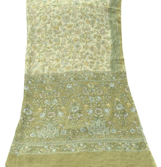Indian Vintage Dupatta Green & Ivory Long Stole printed stole Pure Georgette Silk Scarves Veil Wrap Soft