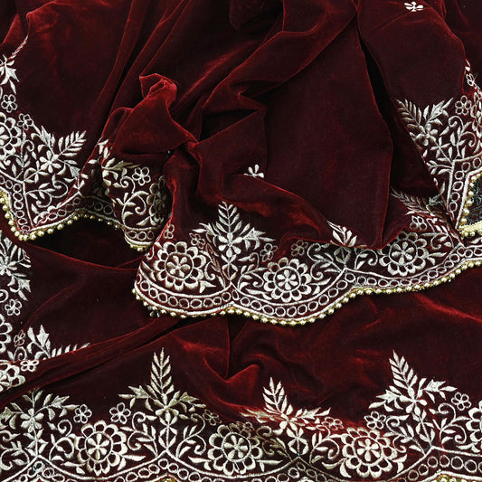 Indian Vintage Heavy Wedding Maroon Dupatta Velvet Long Stole Hand Embroidered Scarves Zari Hijab Veil Wrap Bridal Dupatta