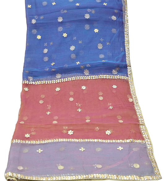 Indian Vintage Blue & Peach Dupatta Net Mesh Long Stole Hand Embroidered Gota Patti Scarves Veil
