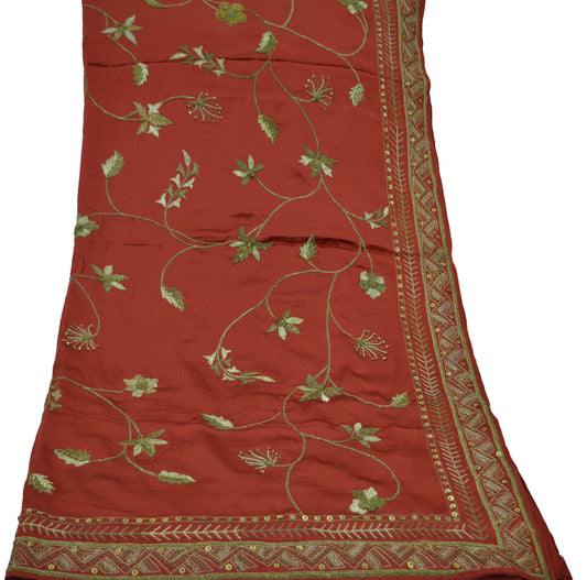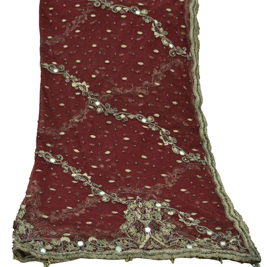 Indian Vintage Heavy Bridal Maroon Dupatta Pure Georgette Silk Long Stole Hand Embroidered Scarf Zardozi/Dabka Wedding red Hijab veil
