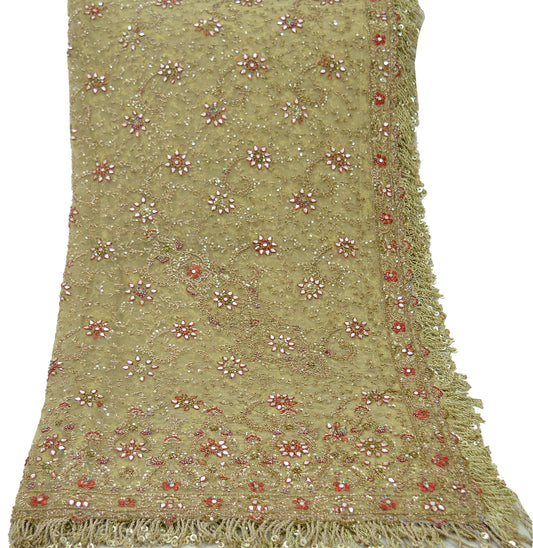 Indian Vintage Heavy Beige Dupatta Net Mesh Long Stole Hand Embroidered Scarves Golden Zardozi Dabka Zari Stole Bridal/ Wedding veil