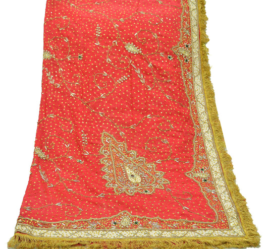 Indian Vintage Heavy Bridal Red Dupatta Pure Chiffon Silk Long Stole Hand Embroidered Scarf Zardozi/Dabka Zari Sequins Wedding Veil Hijab