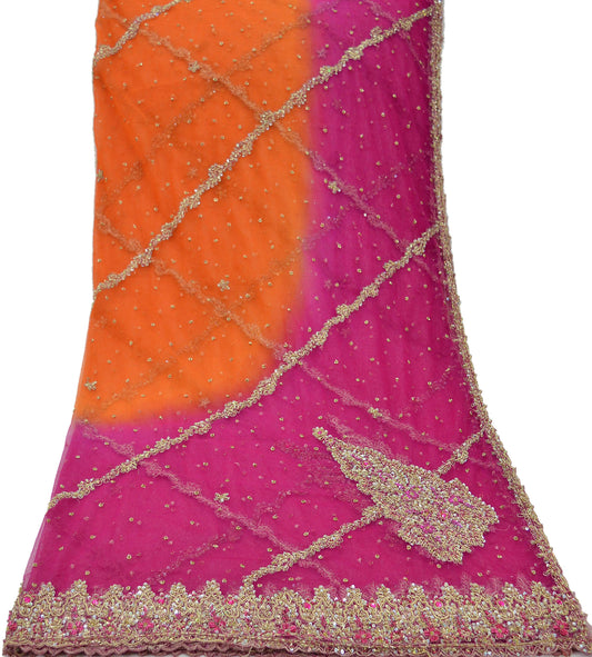 Indian Vintage Heavy Rani Pink Bridal Dupatta Pure Georgette Silk Hand Embroidered Zardozi, Dabka, Zari Work Party Wear Long Stole
