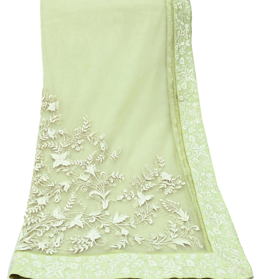 Indian Pre-owned Heavy Green Pure Organza Silk Hand Embroidered Dupatta Designer By Manish Malhotra Zardozi Bridal Veil