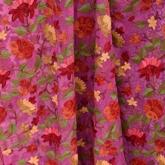 Indian Vintage Dupatta Pink Pure Georgette Silk Long Stole Hand Embroidered Ari Work Kashmiri Scarves Veil Wrap Soft Floral