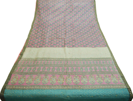 Indian Vintage Heavy Sari Pink Pure Silk Hand Embroidered Saree Fabric 5Yd Sewing Soft Zardozi/Dabka Sequins Wedding Heavy sarees Ethnic