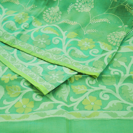 Indian Vintage Sari Green Heavy Hand Embroidered 100% Pure Organza Silk Saree Fabric 5Yard Silk Sari Ethnic Floral