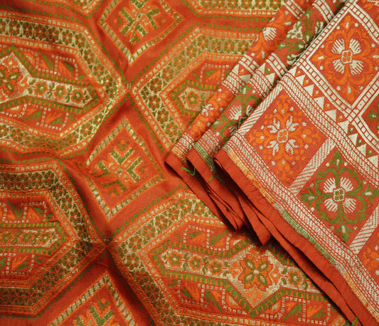 Indian Vintage Sari Orange Heavy Wedding Pure Silk Woven Banarasi Saree Zari 5Yard