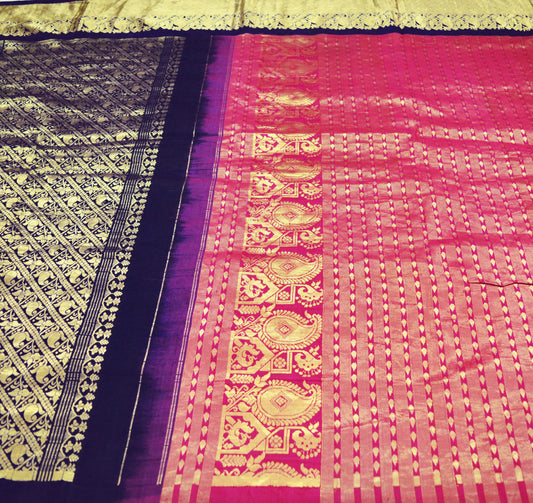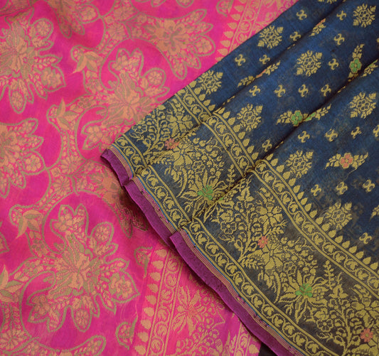 Indian Vintage Sari Heavy Black & Pink Hand Woven 100% Pure Silk Saree Fabric 5Yard Silk Sari Ethnic Floral