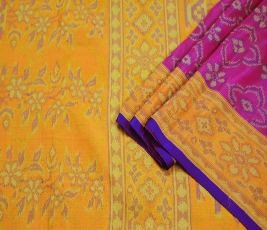 Indian Vintage Mustard & Pink Heavy Saree Hand Woven Pure Silk Indian Sari Fabric 5Yard Silk Sari Ethnic Floral