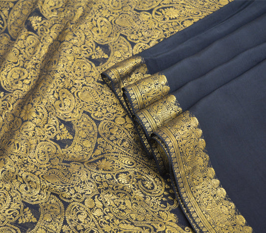 Indian Vintage Heavy Saree Black 100% Pure Silk Hand Women Kanjivaram Indian Sari Fabric 5Yard Ethnic Zari