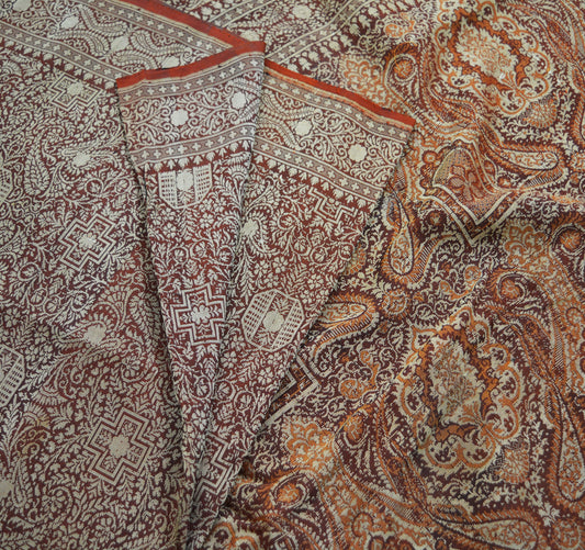 Vintage Brown Heavy Wedding Sari Pure Satin Silk Woven Brocade Banarasi Sarees Zari 5Yd Ethnic Craft Fabric Dress making Upcycle Crafting