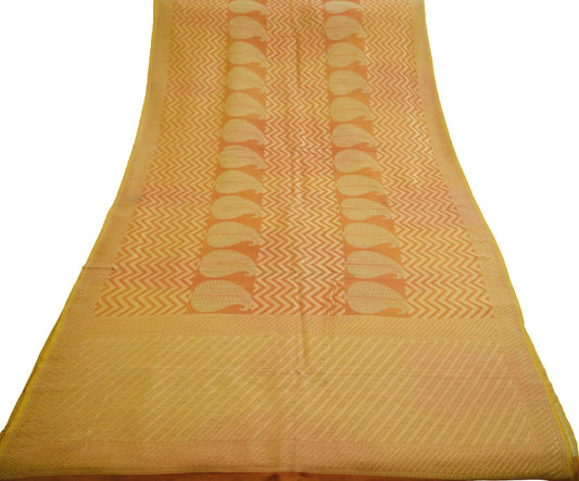 Indian Vintage Heavy Saree Saffron Hand Woven 100% Pure Silk Indian Sari Fabric 5Yard Silk Sari Ethnic Floral Ethnic