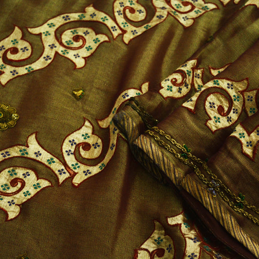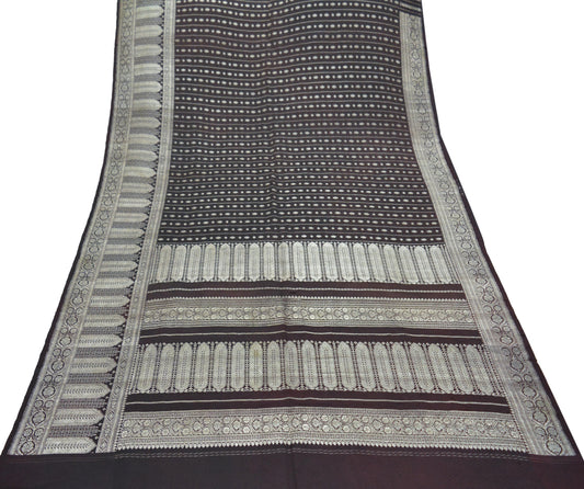 Indian Vintage Dark Brown Heavy Saree Pure Silk Hand Woven Indian Sari 6yd Ethnic Fabric Craft Floral Sewing