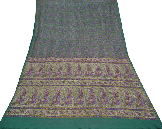 Vintage Green Heavy Saree Pure Woolen Woven Printed Indian Sari Soft Warm Fabric 5Yard Floral Woven Border