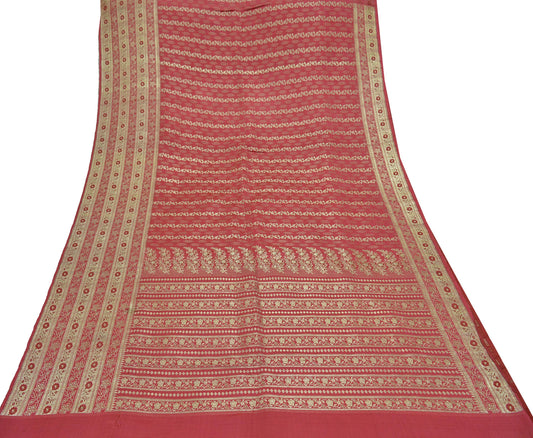 Indian Antique Vintage Heavy Sari Pure Satin Silk Red Hand Woven Banarasi Brocade Sarees Zari 5Yd Craft Fabric Ethnic Upcycle crafting Used