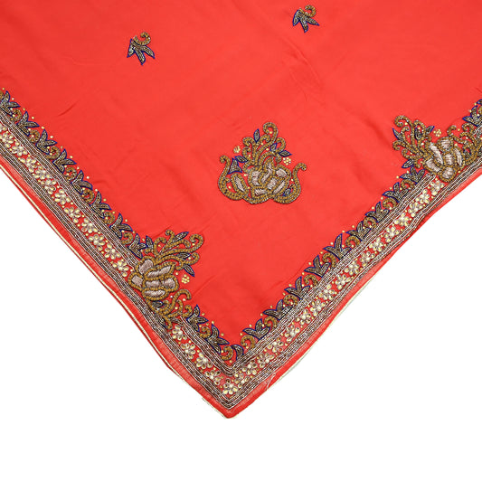 Indian Vintage Heavy Orange Saree Blend Georgette Hand Embroidered Sari Craft Fabric 6Yd Sewing Soft Ethnic Zari Dress Making wedding Sari