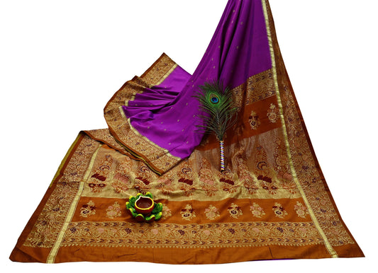 Indian Vintage Heavy Purple Hand Woven Saree 100% Pure Silk Sari 5Yard Floral Dress making Crafting Quilting Upcycle