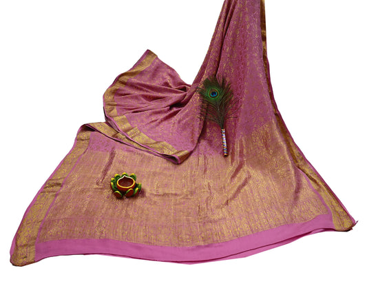 Indian Vintage Sari Pink Heavy Wedding Pure Satin Silk Woven Banarasi Tanchoi Saree 5Yd Ethnic Craft Fabric Upcycle Bridal Heavy Sarees