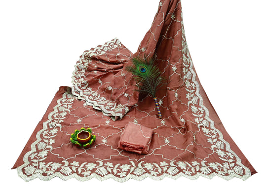 Indian Vintage Heavy Sarees Brown Blend Silk Hand Embroidered Sari Craft Fabric 5Yd Sewing Gota Patti Dress making With Blouse Fabric
