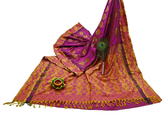 Indian Vintage Heavy Rani Pink Hand woven Kanjivaram Saree 100% Pure Silk Sari Metallic Golden Zari 5Yd Floral Crafting Dress making Fringes