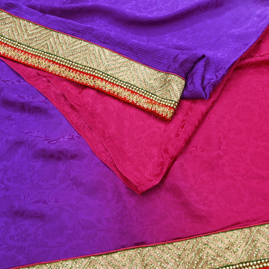Indian Vintage Heavy Purple & Pink Sari Hand Embroidered Saree 100% Pure Silk Craft Fabric 6yd Soft Wedding/Party Wear Blouse Fabric