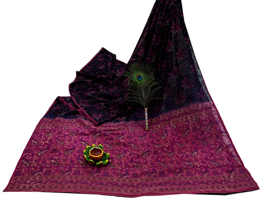 Indian Vintage Heavy Black & Purple Saree Pure Silk Hand Woven Sari Craft Fabric 5Yd Sewing Soft Ethnic Dress Making Wedding Sari Zari