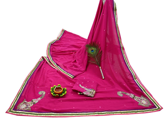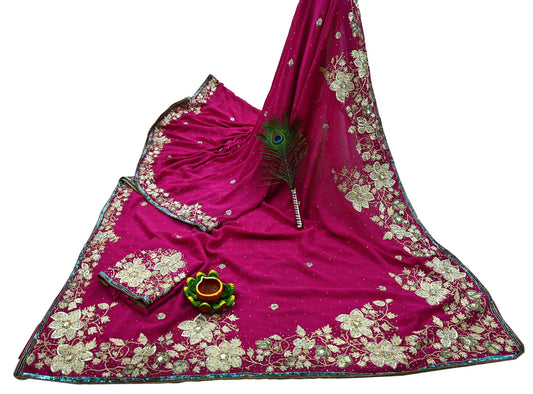 Indian Vintage Heavy Sarees Rani Pink Pure Georgette Silk Hand Embroidered Sari Fabric 5Yd Sewing Ethnic Zardozi/dabka zari With Blouse Pcs