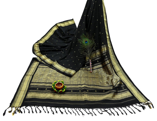Indian Vintage Heavy Black Saree Pure Silk Hand Woven Sari Craft Fabric 5Yd Sewing Soft Ethnic Dress Making Wedding Sari Zari