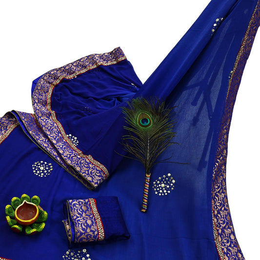 Indian Vintage Heavy Sarees Blue Pure Georgette Silk Hand Embroidered Sari Fabric 5Yd Sewing Ethnic Zardozi/dabka zari Wedding sarees