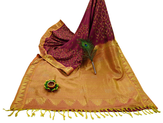 Indian Vintage Heavy Sari Maroon Kanjivaram Sarees 100% Pure Silk Zari 5Yd Floral Crafting Dress making For Crafting Quilting Upcycle