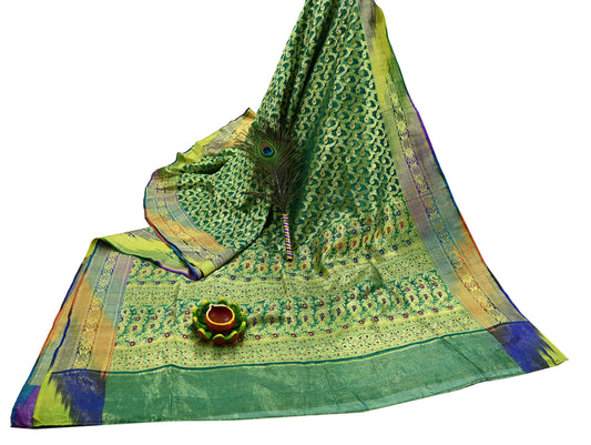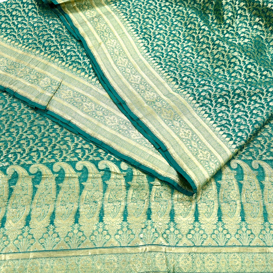 Indian Vintage Sari Green Heavy Pure Satin Silk Hand Woven Tanchoi Sarees Ethnic Wear 5Yd Paisley Craft Fabric Dress Making Crafting