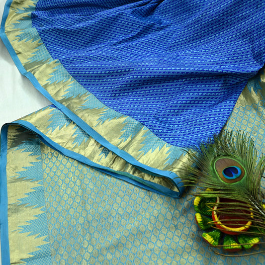 Indian Vintage Heavy Blue Kanjivaram Saree 100% Pure Silk Sari Metallic Golden Zari 5Yd Floral Crafting Dress making