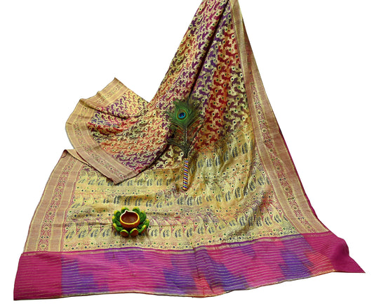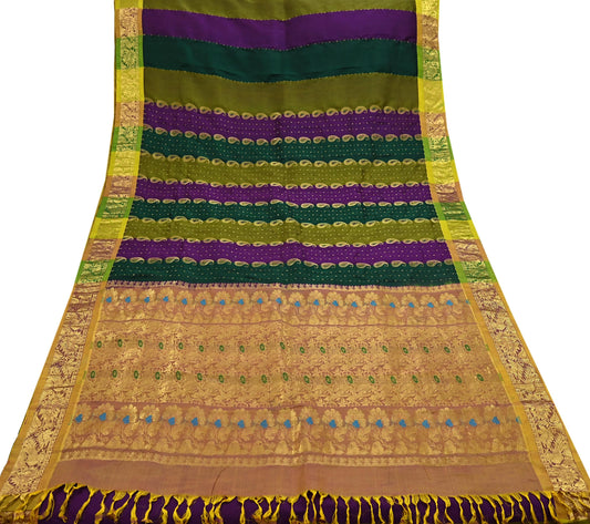 Indian Vintage Heavy Multi Kanjivaram Saree 100% Pure Silk Sari Metallic Golden Zari 5Yd Floral Crafting Dress making