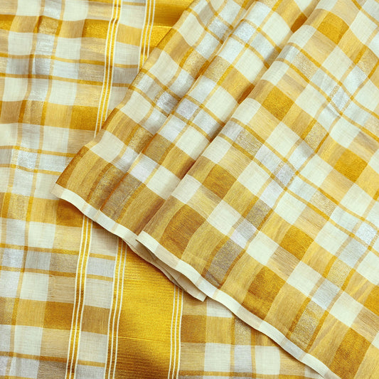 Indian Vintage Heavy Sari Off-White Woven South Sarees Pure Cotton Zari 6Yd Wedding Sarees Dress making Crafting