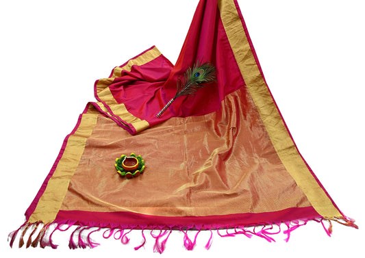 Vintage Heavy Sari Magenta Hand Woven Kanjivaram Artificial Silk Sarees Zari 5Yd Floral Craft Fabric Dress making Crafting Quilting