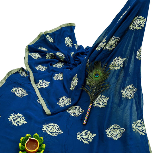 Indian Vintage Heavy Blue Saree Pure Georgette Silk Hand Woven Sari Craft Fabric 5Yd Sewing Soft Ethnic Zari Dress Making Wedding Sari