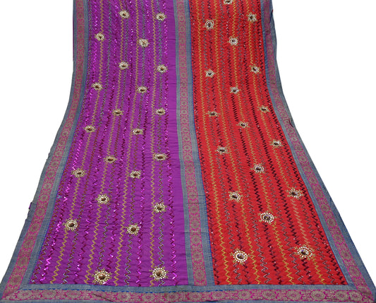 Indian Vintage Heavy Red & Purple Sari Hand Embroidered Sarees Craft Fabric 6Yd Sewing Soft Zardozi/Dabka Wedding/bridal saree