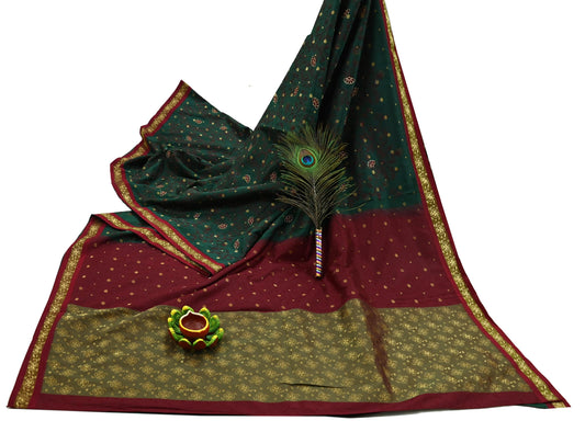 Indian Vintage Sari Bottle Green Heavy Wedding Pure Satin Silk Woven Banarasi Sarees Zari 6Yd Craft Fabric Dress making Crafting Quilting
