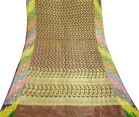 Indian Vintage Sari Heavy Multi Pure Organza Silk Woven Brocade Banarasi Sarees Zari 5Yd Ethnic Fabric Dress Making Wedding Sarees