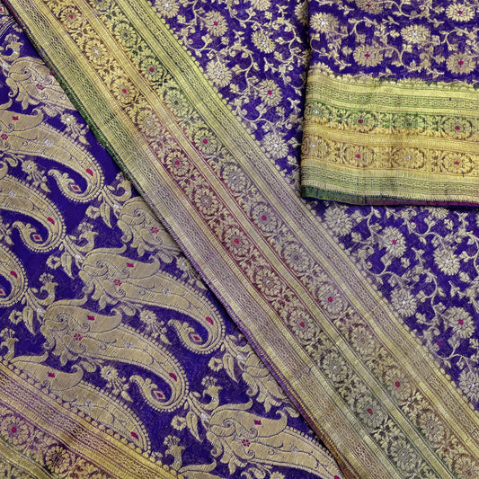 Indian Vintage Sari Heavy Purple Pure Organza Silk Woven Brocade Banarasi Sarees Zari 5Yd Ethnic Fabric Dress Making Wedding Sarees