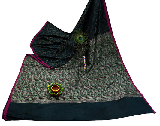 Indian Pre-owned Heavy Sari Black & Green Pure Georgette Silk Hand Embroidered Sarees Designer Sabyasachi 6Yd Sewing Ethnic Sarees