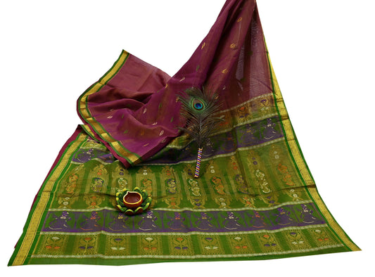 Indian Vintage Heavy Green & maroon Kanjivaram Saree 100% Pure Silk Sari Metallic Golden Zari 5Yd Floral Crafting Dress making