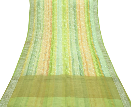 Indian Vintage Multi Heavy Saree Hand Embroidered Pure Organza Silk Indian Sari Fabric 5Yard Ethnic Floral Zari Dress making Crafting