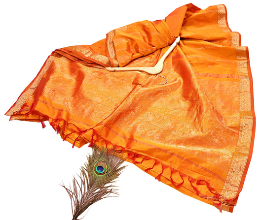 Indian Vintage Heavy Saffron Saree 100% Pure Silk Hand Woven Kanjeevaram Sari 6yd Ethnic Zari Premium Wedding Saree Fringes
