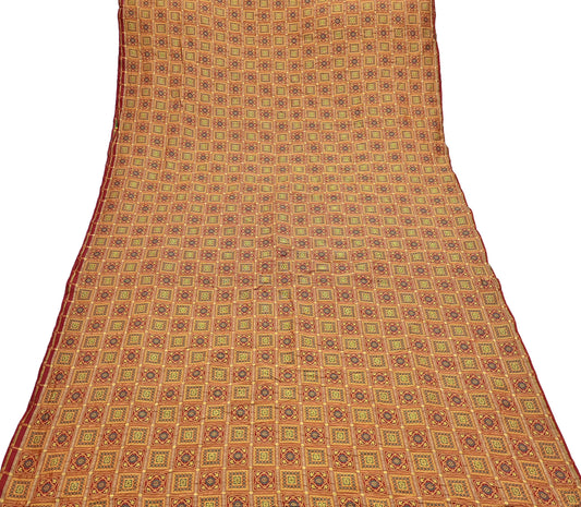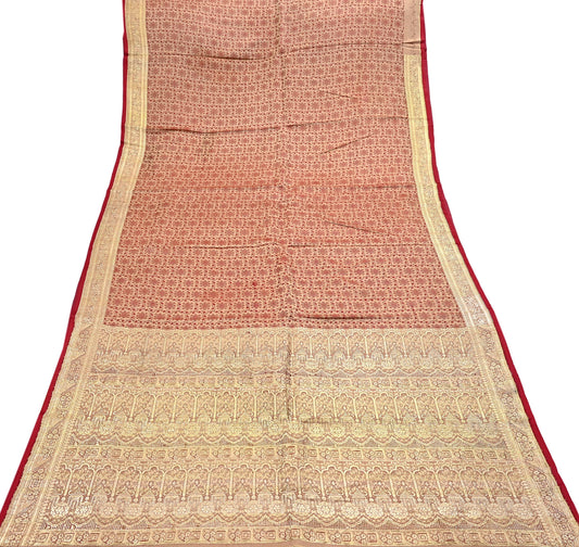 Indian Vintage Beige & Red Banarasi Brocade Saree Heavy Zari Woven Fabric 5 Yards Ideal for Crafting, Dressmaking Decor Quilting